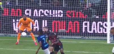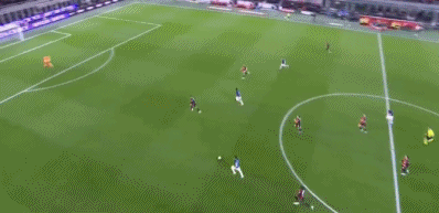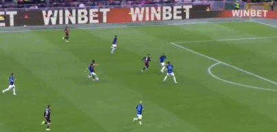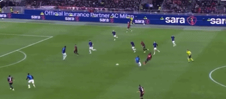 回过头来,AC米兰踢出犀利反击,福法纳中路送出精妙直塞,埃斯图皮尼安左路插上,小角度爆射破门,红黑军团打破僵局,1-0!